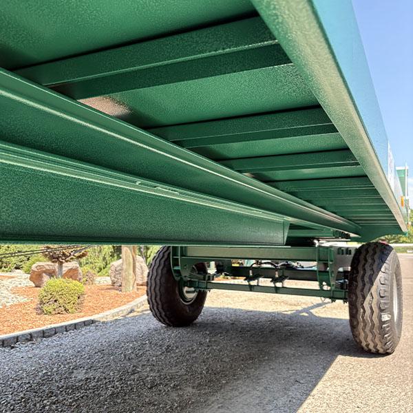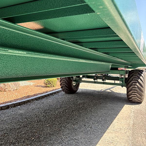 - Train avant oxycoupé sur lames de ressorts permettant de placer le timon au même niveau que l’essieu avant